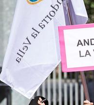 We report something that might be a parish flag, maybe improvised and/or one-off, but unmistakably a photo of a blue-yellow-red tricolor with a CoA on the central panel that is definitely neither version of the national arms and looks very much like the older version of the communal/parochial arms of Andorra la Vella, mainly blue.