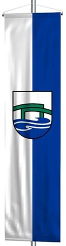 flag adoption date unknown; it uses the colors: white and blue. Blazon as translated: "In silver, on a