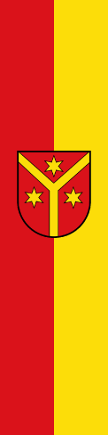 The arms show a yellow/golden upright pall on red, with a six-pointed star in each of the three fields.