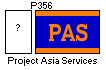 a blue field with an orange border chief and base the orange letters "PAS". From