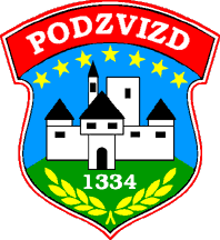 seven estoiles Or archwise and on a chief Gules the word PODZVIZD Argent. The