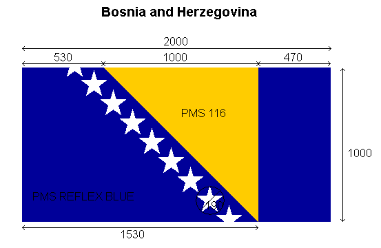 For Bosnia and Herzegovina, PMS 294 blue and 116 yellow. The vertical version is simply the flag turned through 90 degrees clockwise.
