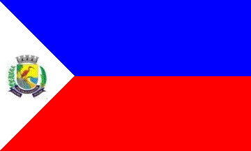 Dark blue over red, a white triangle extending from the hoist, on the triangle the municipal arms.