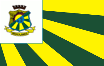 with a large white canton, fimbriated light blue, and bearing the municipal