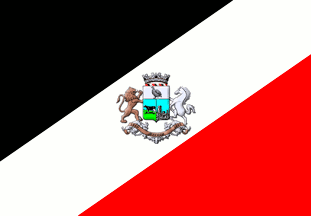 A diagonal tricolour per bend sinister black-white-red, with the municipal