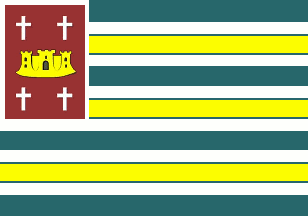 second yellow stripe, a yellow castle and four white Latin crosses.