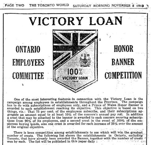from The Toronto World, 8 November 1919, page 2. The article refers to possible
