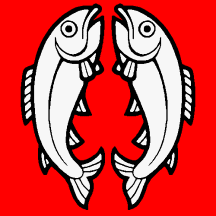 Gules two Fishes embowed in pale affrontant.