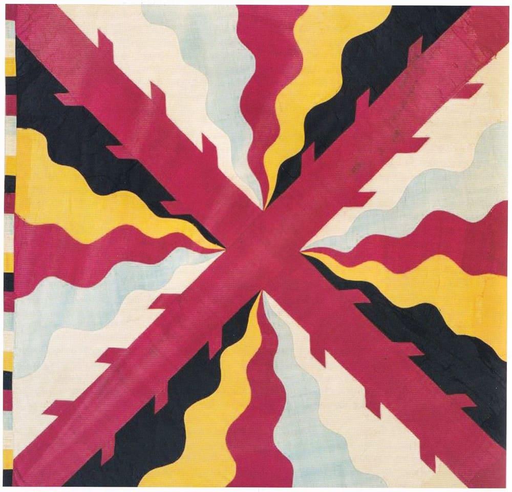 The wavy flames radiating from the center originated in the 16th century. In Switzerland proper cantonal flags predominated over the confederate white cross, but in mercenary service the units were mixed and of little cantonal significance.