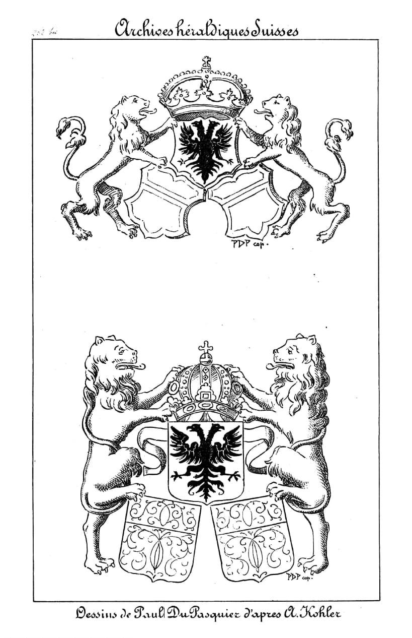 This flag could have a link to the city of Lausanne, Switzerland. The red part of the shield looks larger than the white, like Lausannes (gueules chappé d'argent in heraldic French), and the district of La Palud in Lausanne had the imperial eagle on its banner in medieval times.