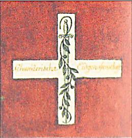 the Austrians, the early Swiss (mostly peasants in arms) used to stitch two stripes of white fabrics on