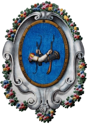The CoA was granted to the town of Marinilla by the "Real Cámara de Indias" (Royal Chamber of the Indies) on February 20, 1793 and the chronicler of King Charles VI certifies as follows (original in Spanish): "Encircled by his entire enterprise or emblem or two arms of incarnation that on a blue field, symbolizing this color of perseverance, reward and loyalty, are united and dressed in the ancient and original Spanish Indian costume, hanging from the Spanish hand the harpoon and arrow and from the Indian the musket or rifle; this shield covered with gold and in demonstration of its current and future prosperity and in black letters this motto "PRO RELIGIONES ET REGE MUNERA ANTIQUITATIS NOBIS COMUNIA" (For religion and the King the gifts of the ancestors are common to us; in Latin).