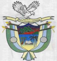 Río Iró flag is horizontal green-blue-yellow with grey circle