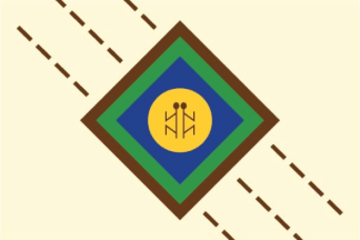 The flag was designed by local leader Jaime Alberto Beltrán Salamanca (probably by 2019), being created through a contest created through Contract 249 of that year. It was adopted officially through Local Agreement 003 of 2023 on 21 June 2023. With symbolism explained by its author: The flag itself is a beige field for local tranquility, peace, and harmony, with three brown diagonal dotted lines to the top-left and lower-right for thoughts leaving and entering by word, work, and action. In the center is a diamond shape outlined in brown for the great expanse of Mother Earth which allows for the building of the locality; it is also outlined in green for its parks and hills, connecting the city to rural areas, and agricultural production; and finally, going to the center is a blue diamond for having great importance in local waterways, where waterways connect and serve as a gateway to the Sumapaz Region. In the very center is a yellow circle with its color standing for happiness, love, and maintaining local culture.