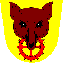 Flagdescription: yellow field, a brown fox's head holding in its mouth