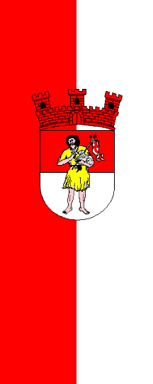 Staßfurt is situated in Aschersleben-Staßfurt county. Since 1990 a red-white banner with the arms is used. The arms had been changed during the communist era. The colour of the mural crown is uncertain. Source: Günther 1996b.