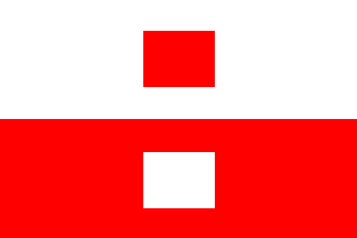 A vast majority displays white-red bicolours with squares in counterchanged colours in each stripe shifted to the hoist. .