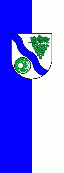 It is a blue-yellow vertical bicolour. The coat of arms is shifted to the top.