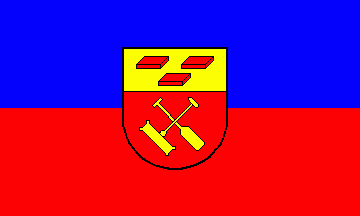 The spades are referring to peat digging in the local marshes in the past. The bricks are referring to the local brickyards. The colours red and yellow are those of the Bishopric of Münster, to which the area historically belonged. The flag colours are those of the Grand Duchy of Oldenburg.
