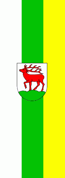 The arms are canting, as the first name of the settlement had been Hirschberg (= mountain of the stags).The colours of the flag, white-green-yellow, are not derived from the arms. Possibly white and green are for Saxony to which the city belonged until 1815, and green and yellow for the Fläming region.