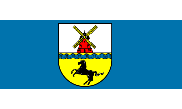 The Dutch windmill is a local landmark, the so called "Erdholländer", built in 1864. The mill also connects agriculture with crafts and industry. The bar wavy with eight waves is symbolising the eight settlement cores of the municipality and the Mittelland Channel. The horse is taken from the arms of the Lords of Grote. It is also alluding to the local economic importance of horses in the transport business, before the railway was invented.
