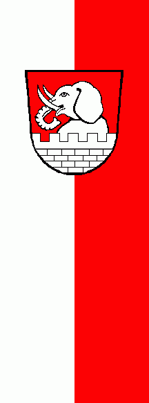 The elephant (Middle High German: Helfant) is taken from the arms of the Counts of Helfenstein. The embattled wall is just a distinguishing mark. The arms were proposed in 1948.