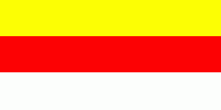The ratio is given as 1:2. It was a yellow over red over white horizontal tricolour.