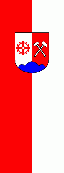 It is a white - red vertical bicolour. The coat of arms version 1978 is shifted to the top. (right image above)