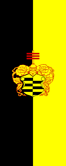 It is a black-yellow vertical bicolour with centred old arms.