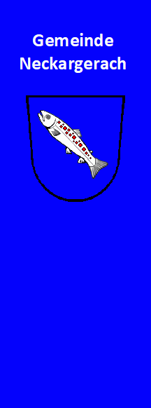 It is a blue banner. The coat of arms is shifted to the top. Above the shield is a white, centred inscription "Gemeinde" (1st line) "Neckargerach" (2nd line).