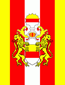 It is a yellow-red-white horizontal tricolour (banner of arms).