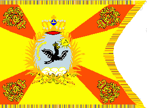 It was the only regiment having a vexillum (a hanging flag) as its proper colour. All other Cuirassiers had fringed square standards sized estimated between 30cm x 30cm and 40cm x 40cm. (My estimation is based on a picture showing infantry and cavalry flags together at Historischer Bilderdiens website.) It should be noted that [fie36] gives the size as 50cm square.