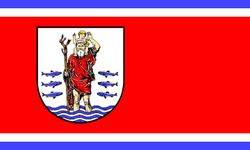 The flag was approved on 16 December 1991. The coat of arms was approved on 20 July 1978. The artist is Heinrich G. Gerritz from Glücksburg.