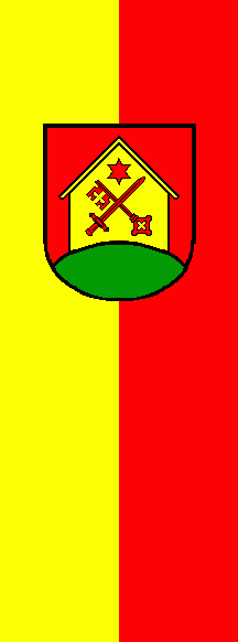 It is a yellow-red vertical bicolour. The coat of arms is shifted to the top.
