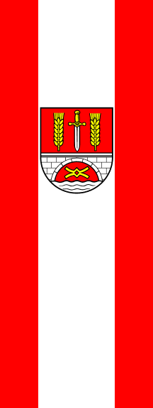 It is a red-yellow vertical bicolour. The coat of arms is shifted to the hoist.