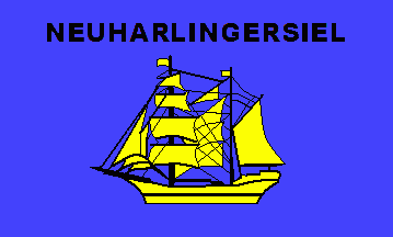 The arms of Neuharlingersiel show a two-masted ancient sailing ship on a blue background. The image of the schooner reminds of the large sailing ships which had once their base here and shows the position of Neuharlingersiel on the Northsea-coast. The colors blue and gold underline that the municipality is part of the Samtgemeinde Esens.
