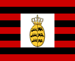 According to Ströhl 1897, the king's standard was introduced in 1894. Before that the standard was black over dark red, 4m × 4m with a white central medallion of 2m diameter with the state coat-of-arms. The medallion was surrounded by a wreath of olive branches bound with a black-red ribbon.