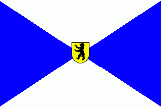 The flag was parted per saltire of blue and white. On its centre was a small yellow shield depicting a black bear.