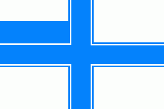 It is a white flag with a blue cotized off-centred cross. In the canton is a blue "Zirkel" of the fraternity in a white field.