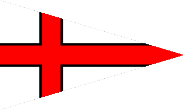 The pennant was white parted by an off-centred red cross fimbriated black.