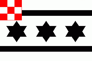 The flag was white with three centred black 6-point stars orders per fess between two black horizontal lines.