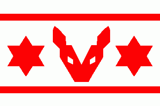 It is a white flag (see left image above) divided by two narrow red horizontal stripes, one in the upper half, the other in the lower half,