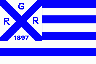 The white canton was parted by a blue saltire with blue inscriptions as follows: "R" (hoist and fly), "G" (top) and "1897" (bottom).