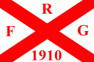The flag was white parted by a red saltire with red inscriptions on every quarter "F"(hoist) "R"(top) "G"(fly) and "1910"(bottom).