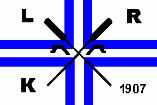 The flag reported 1977 was quarterly divided into blue and white and has an additional white stripe at the hoist. In the centre of the quarters is a blue shield containing the inscription "LRC 1875" and a pair of crossed oars.