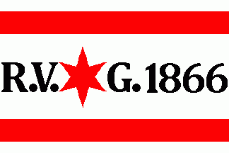 The flag was white. Between two horizontal red stripes was a black inscription "R.V.G.1866", parted by a red 6-point star behind the "V.".