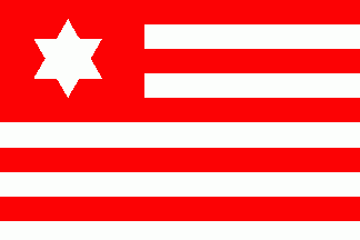It was a 10-stripes flag horizontally divided by alternating red and white stripes. On red canton was a white 6-point star.