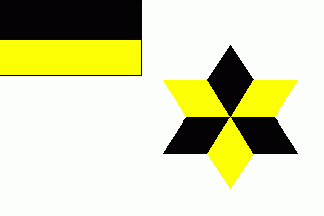The flag was white. In canton was black-yellow horizontal bicolour. On lower fly was a 6-point star facetted of black and yellow.