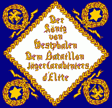 On 19 May 1811 the Jäger-Carabinier-d'Elite received a standard of the line infantry 1810 pattern with different inscription in centred golden Gothic letters, on the obverse: "Der/König/von/Westphalen/dem Bataillon/Jäger-Carabiniers/d'Elite" , on the reverse "Tapferkeit/Und/Gutes/Betragen ".