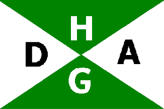 Description of flag: It is a green and white flag divided by saltire with capital letters "H"(top, white), "D"(hoist,black), "A"(fly,black) and "G"(bottom,white). The letters have no serifs. The flag was used from